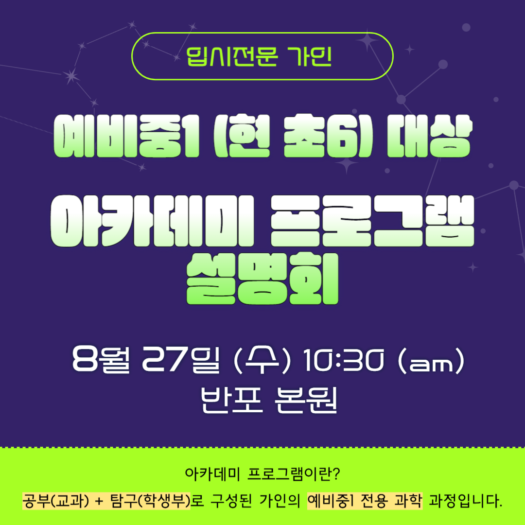 ● 대상 : 예비중1 (현 초6) 학생, 학부모