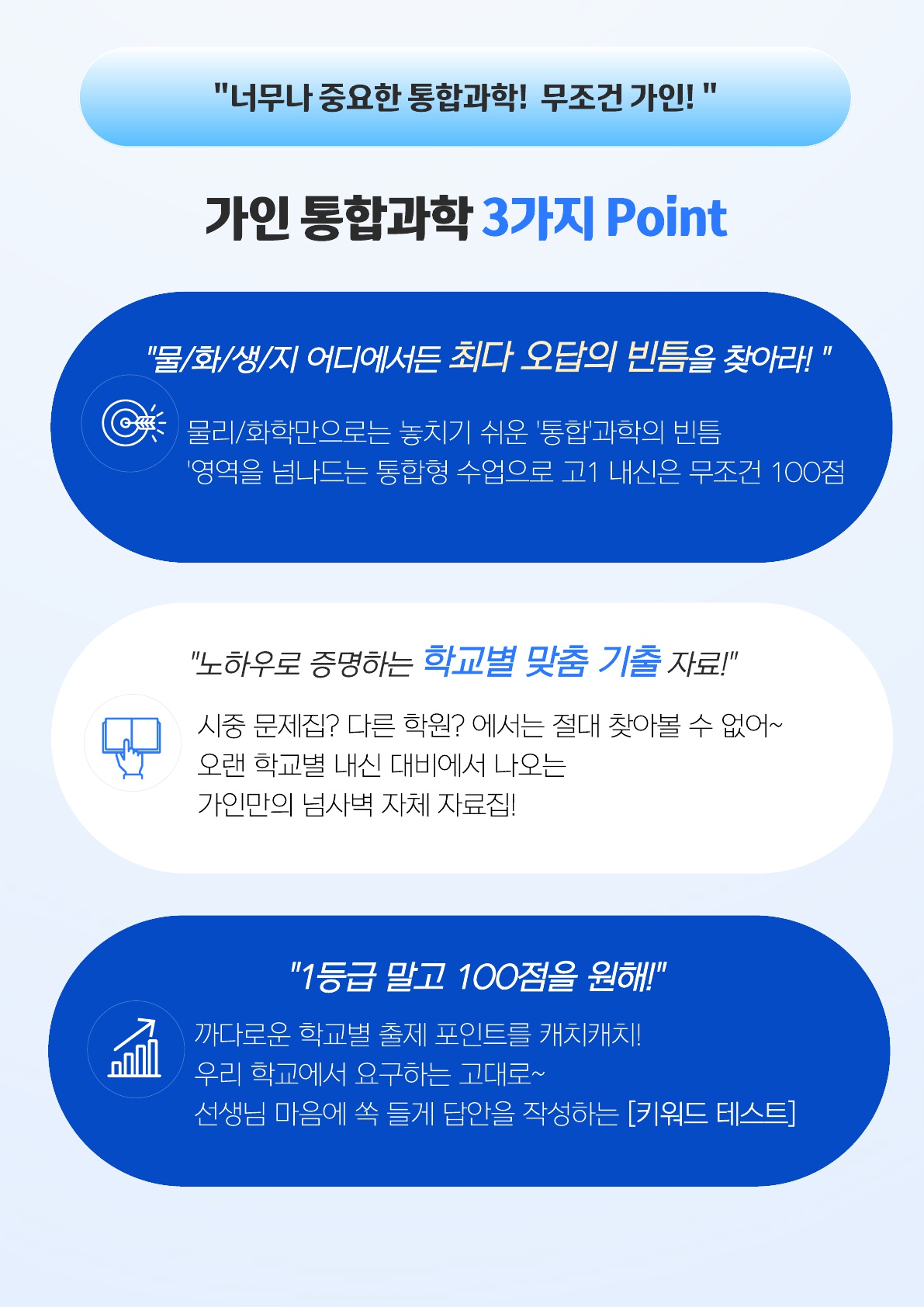 통합과학은 수능 지정과목으로 진학 계열에 관계 없이 누구에게나 중요한 과목입니다.