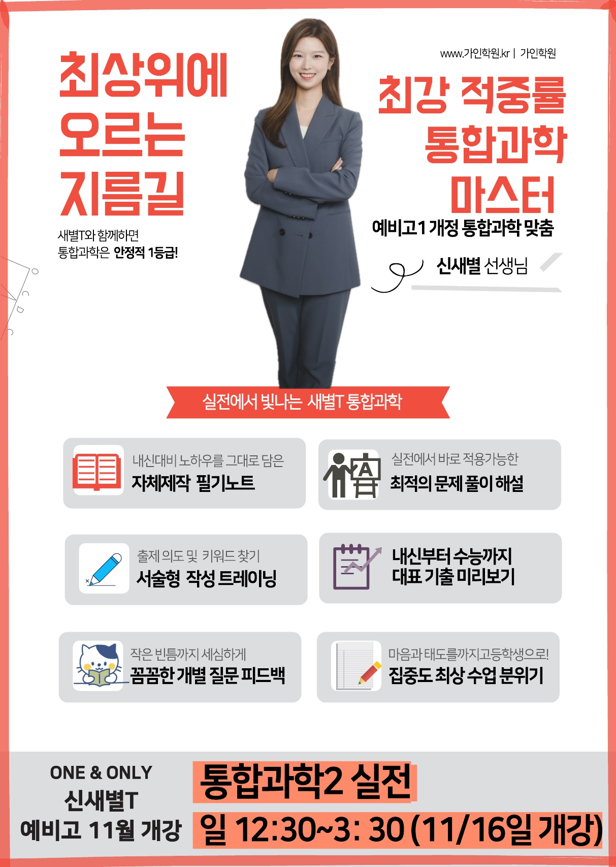 가인에서 개설하는 통합과학 실전 수업은 중등과정을 모두 마친 예비고1을 대상으로 하기 때문에