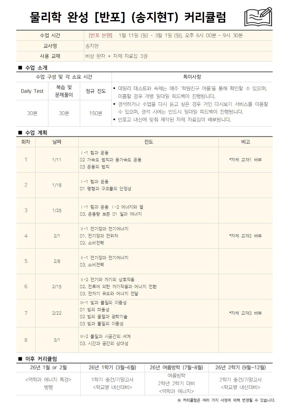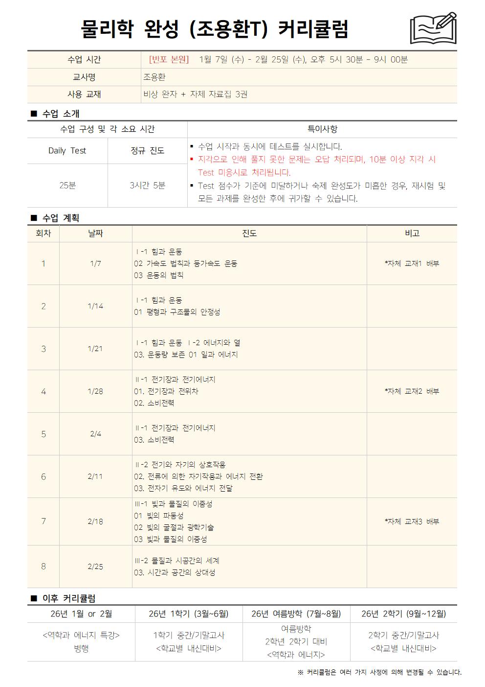 수 10:00~1:30 ** 12/31(수) 11:00~1:30 (2.5h) 변경