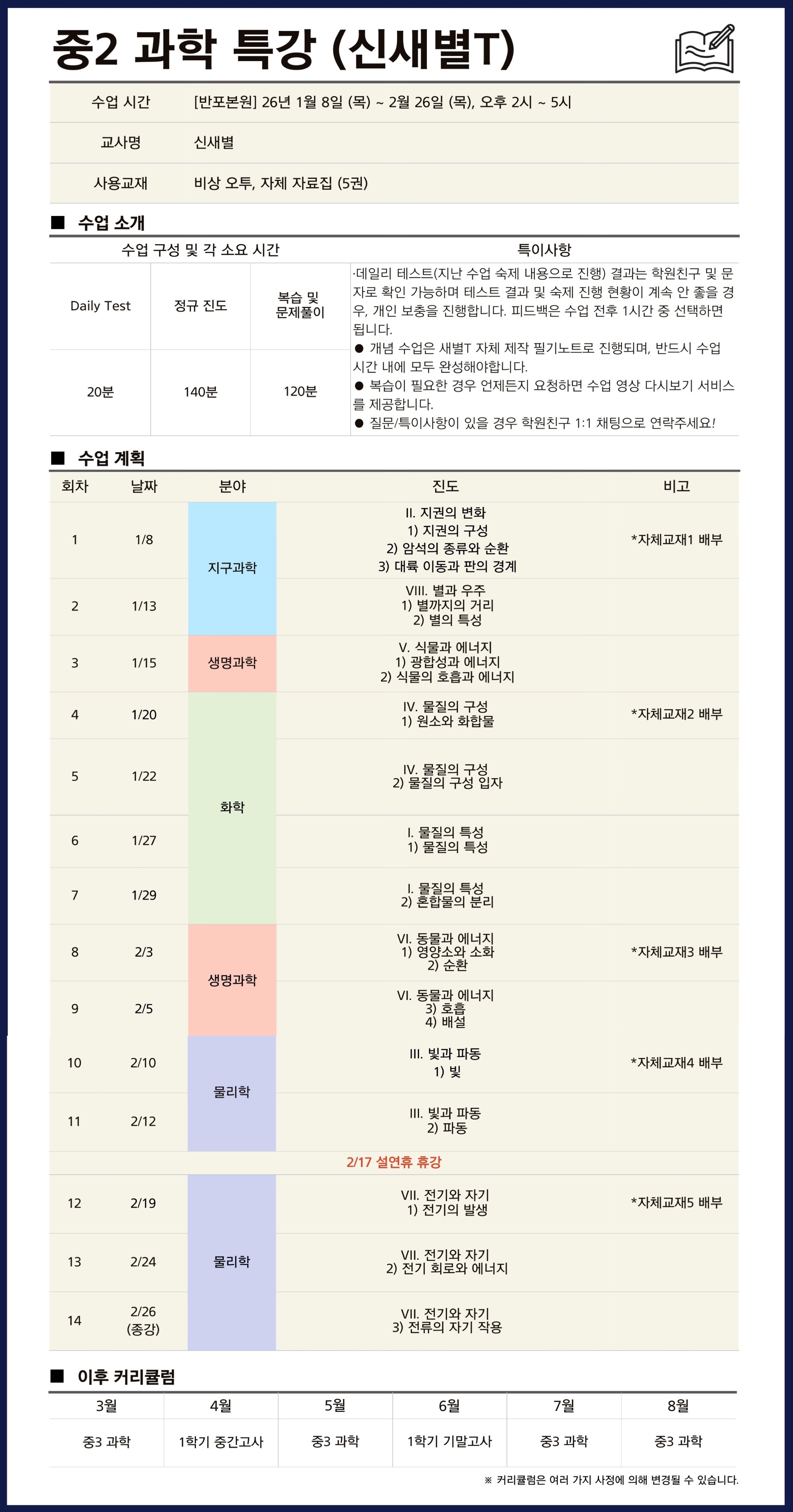 중등과학 시간표