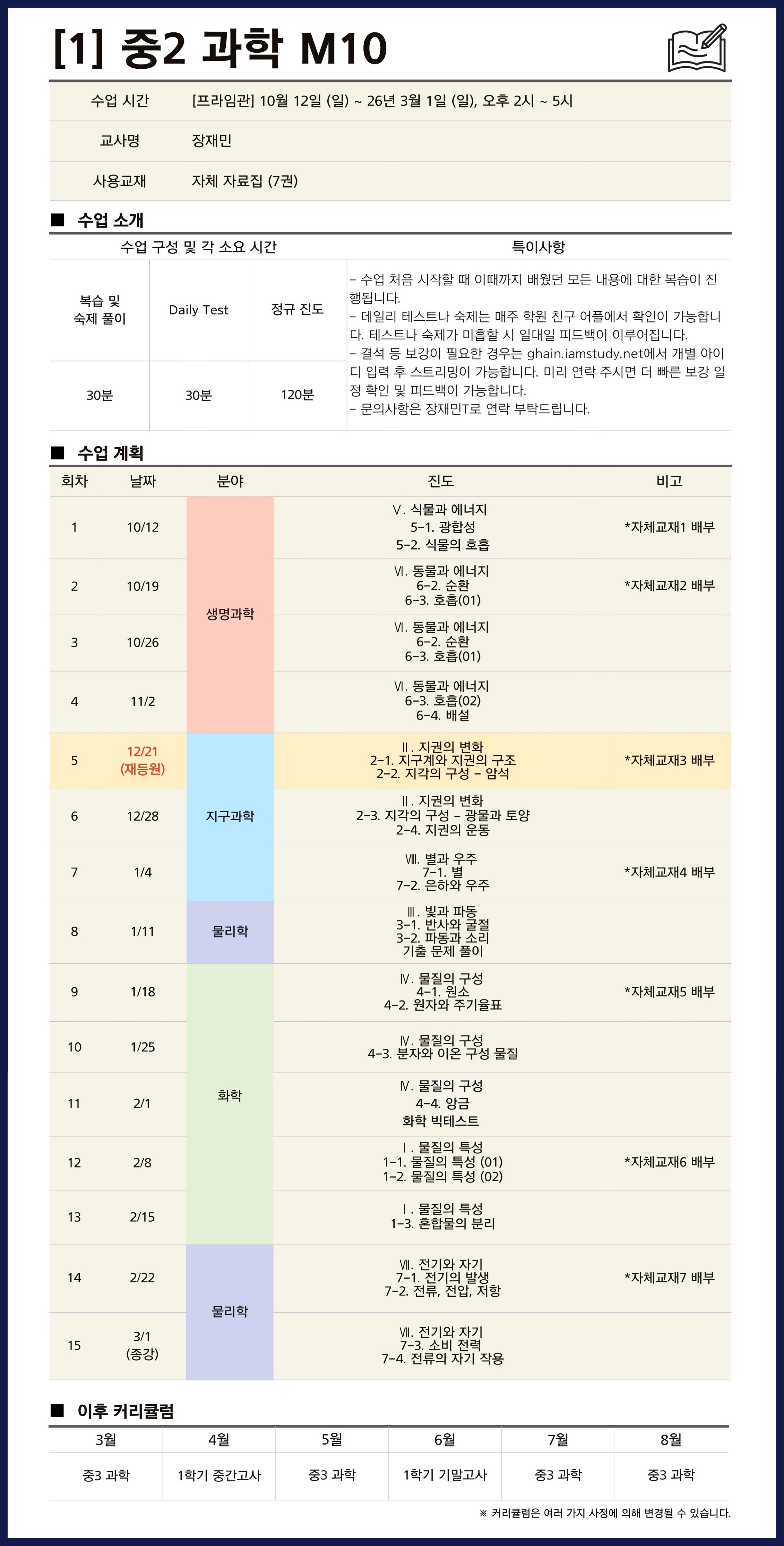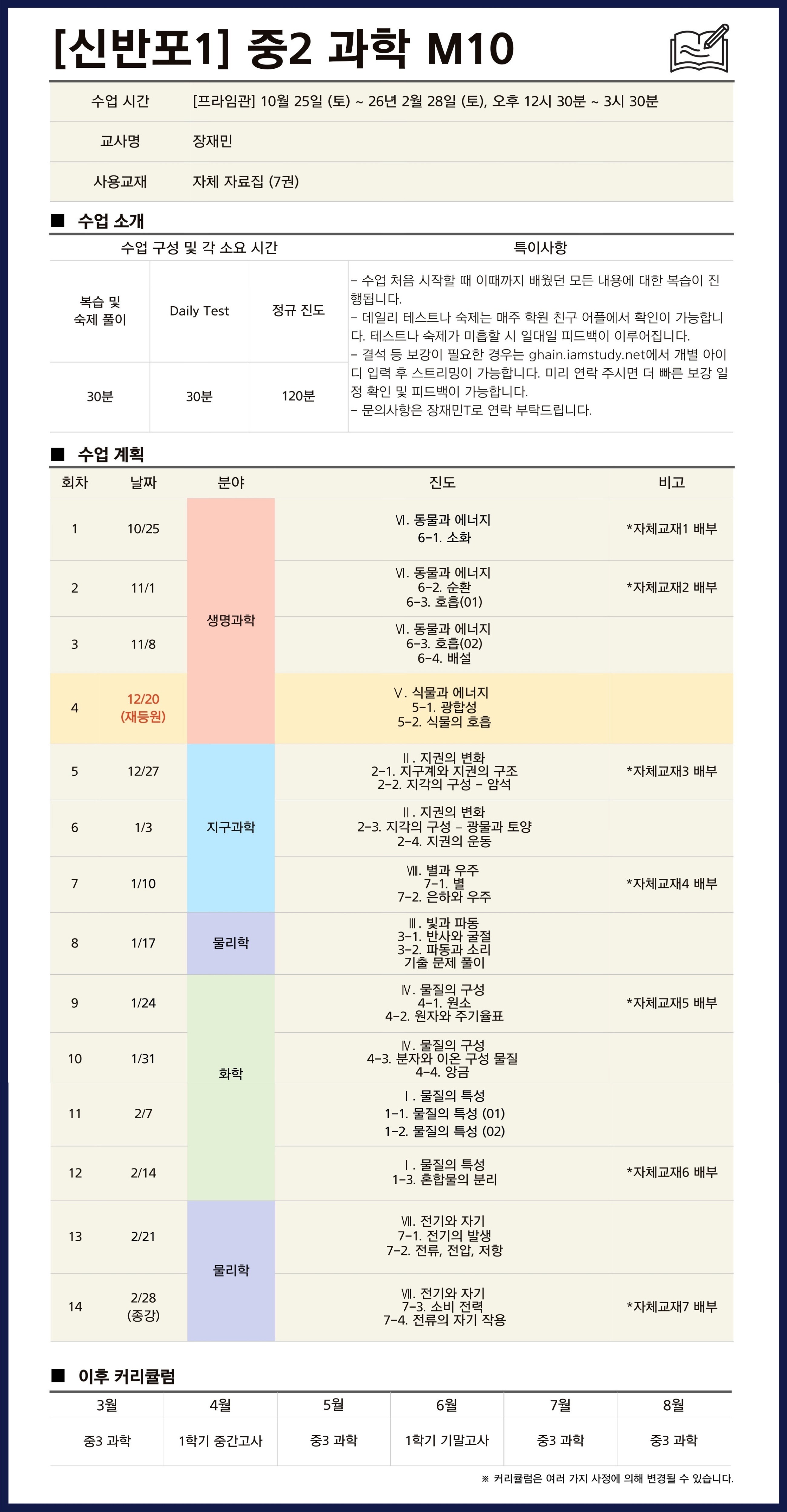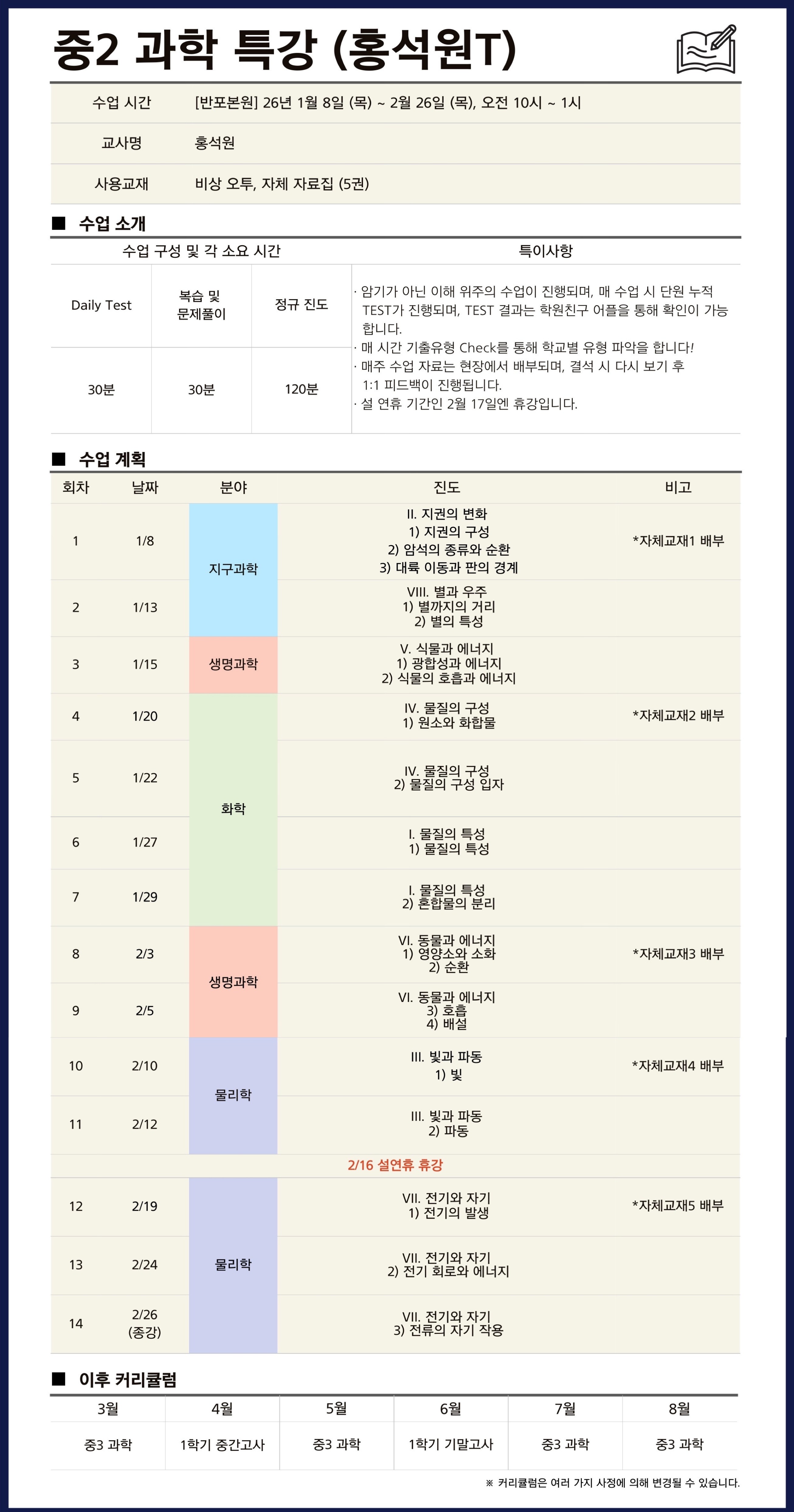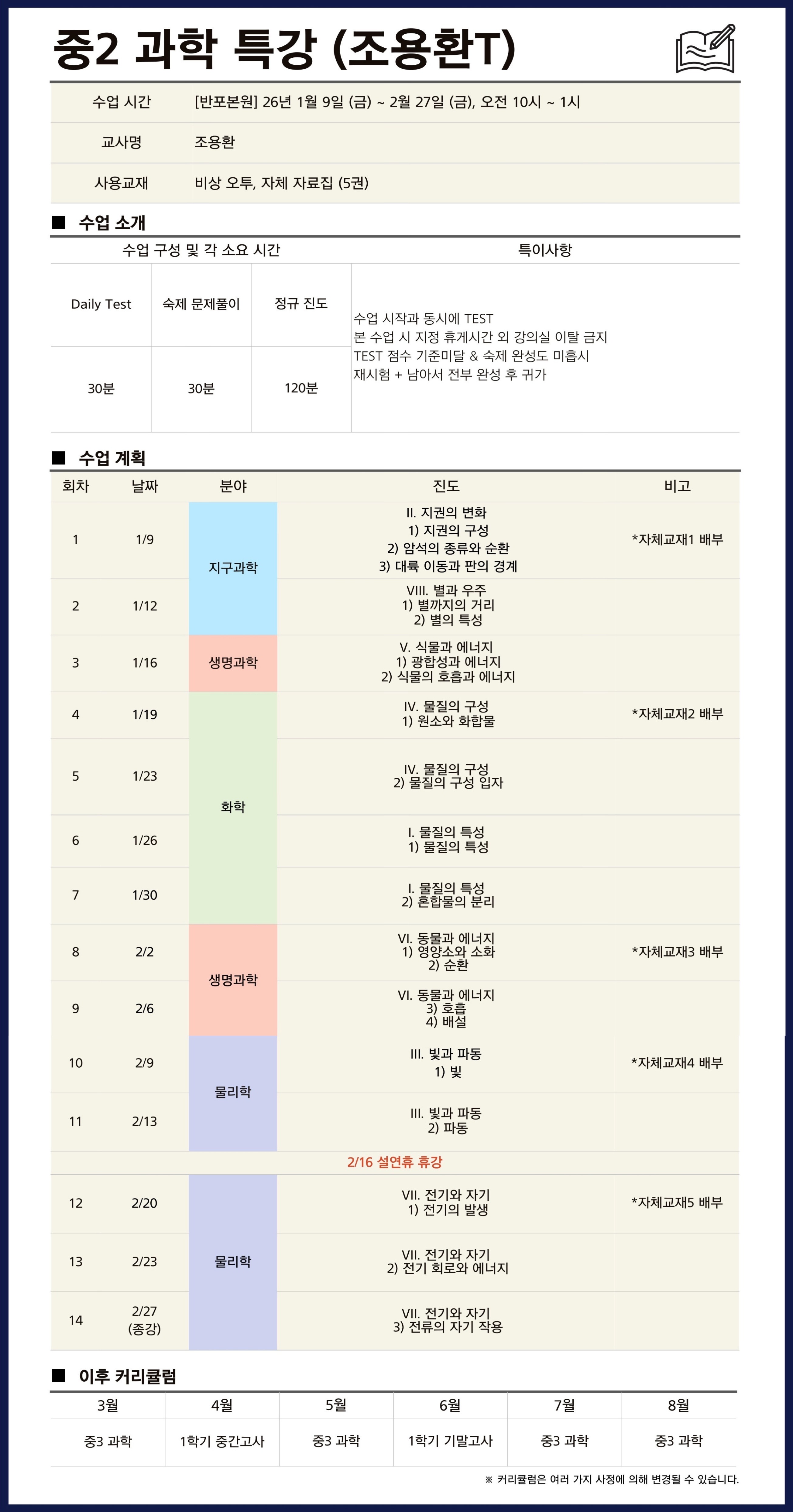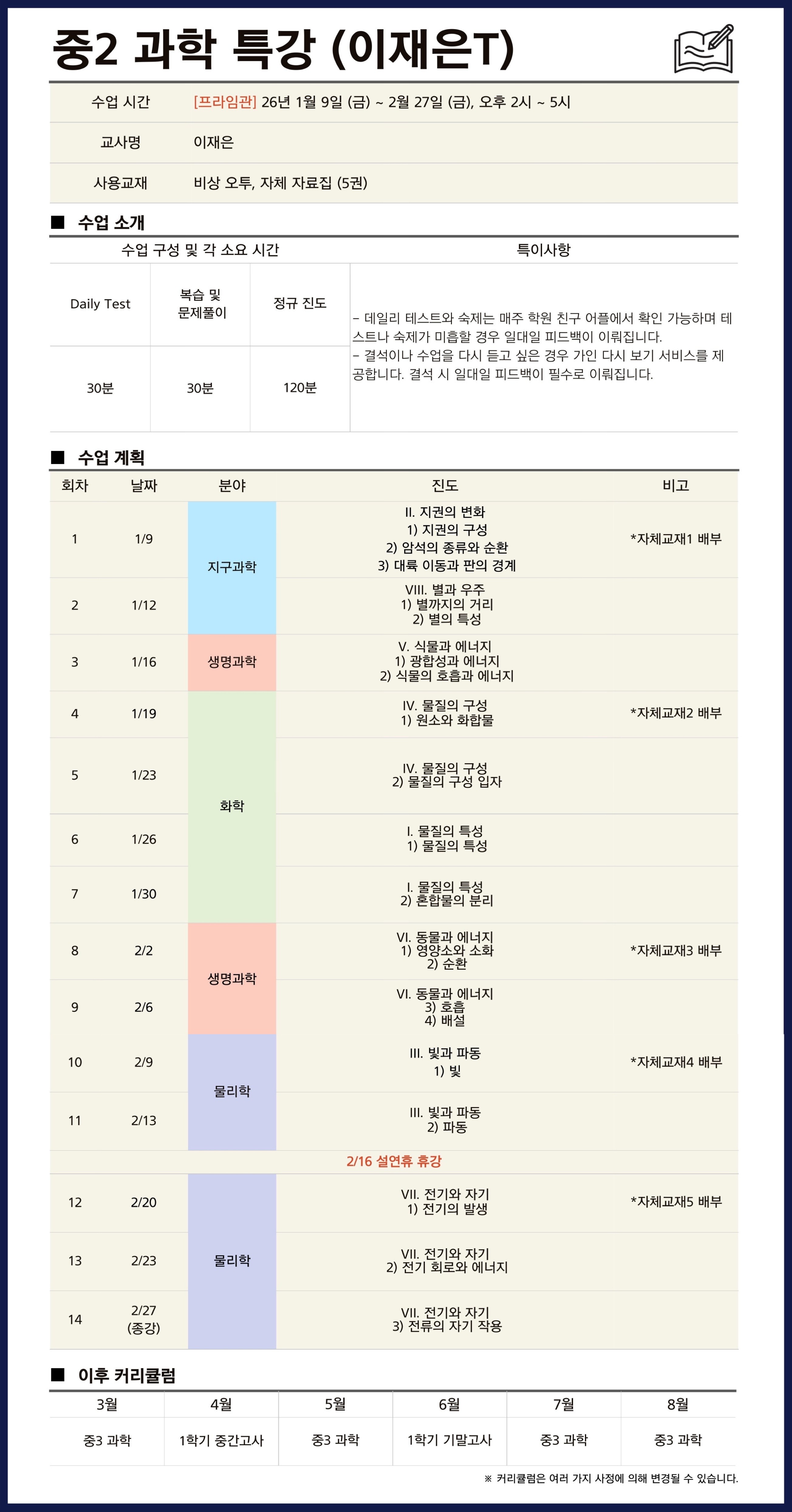 * 1월 10일부터 이재은 선생님께서 수업을 진행하실 예정입니다.