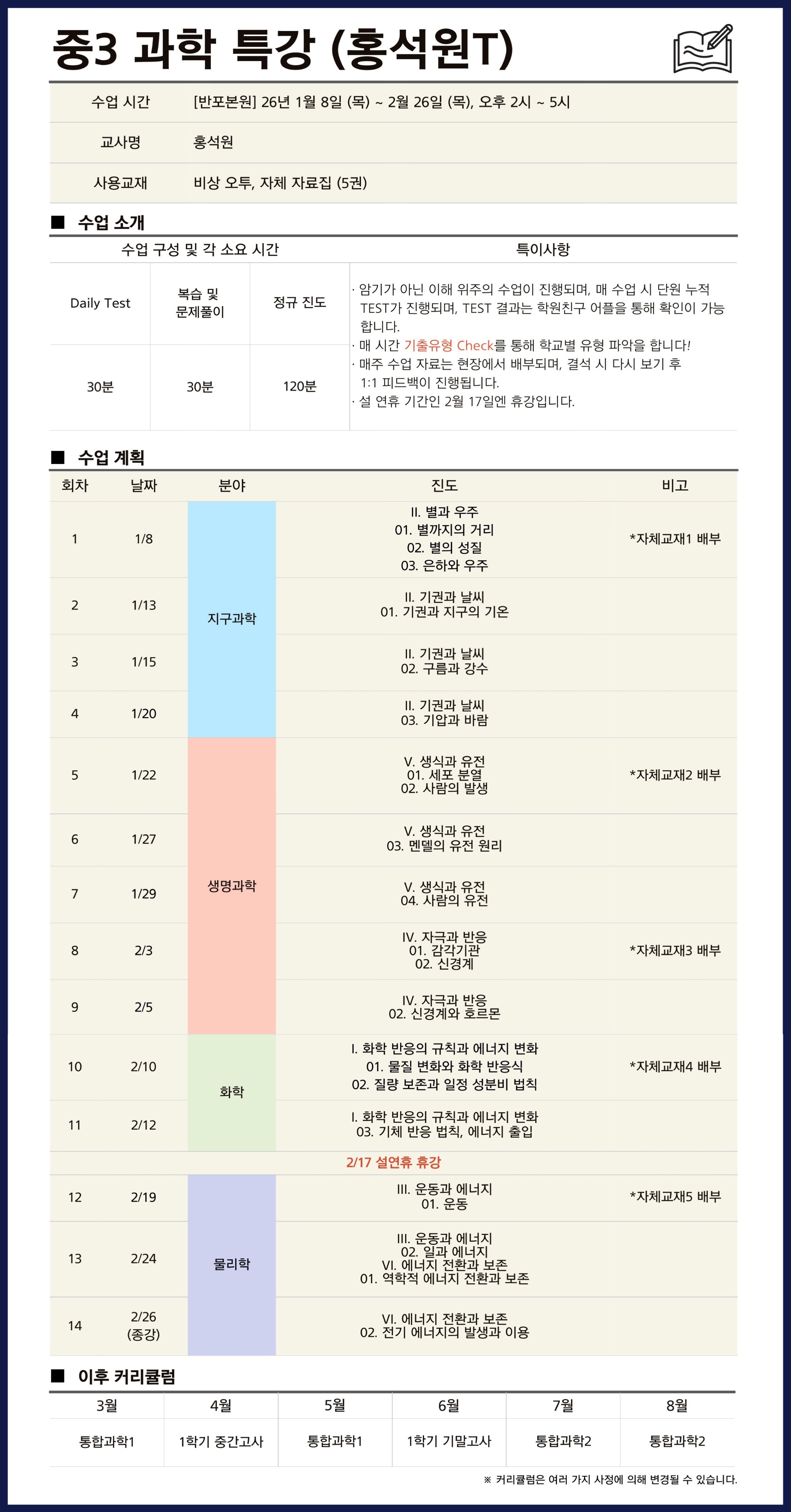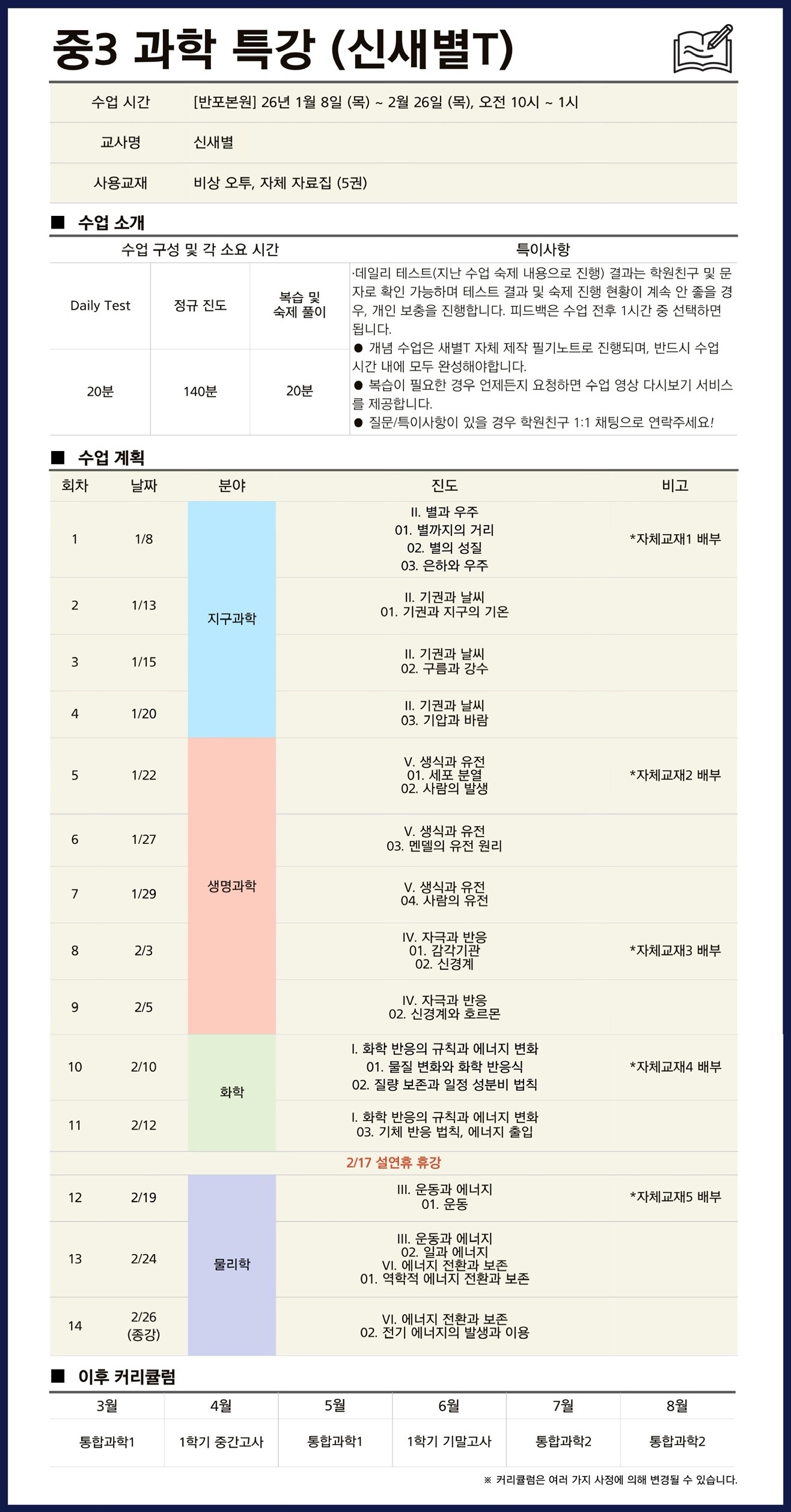중등과학 시간표
