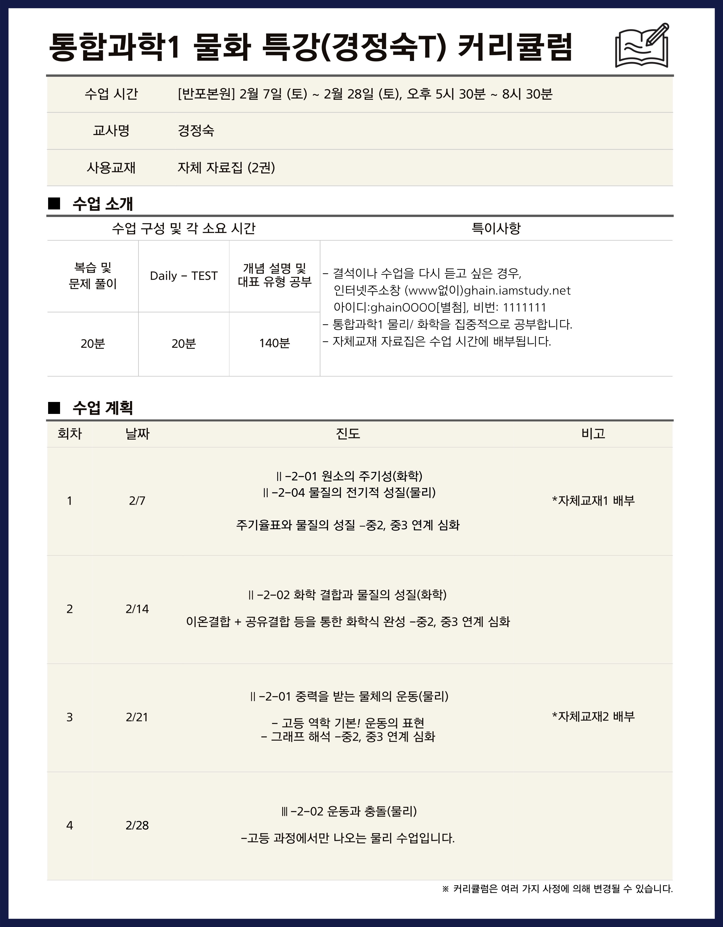 * 1월 10일부터 이재은 선생님께서 수업을 진행하실 예정입니다.